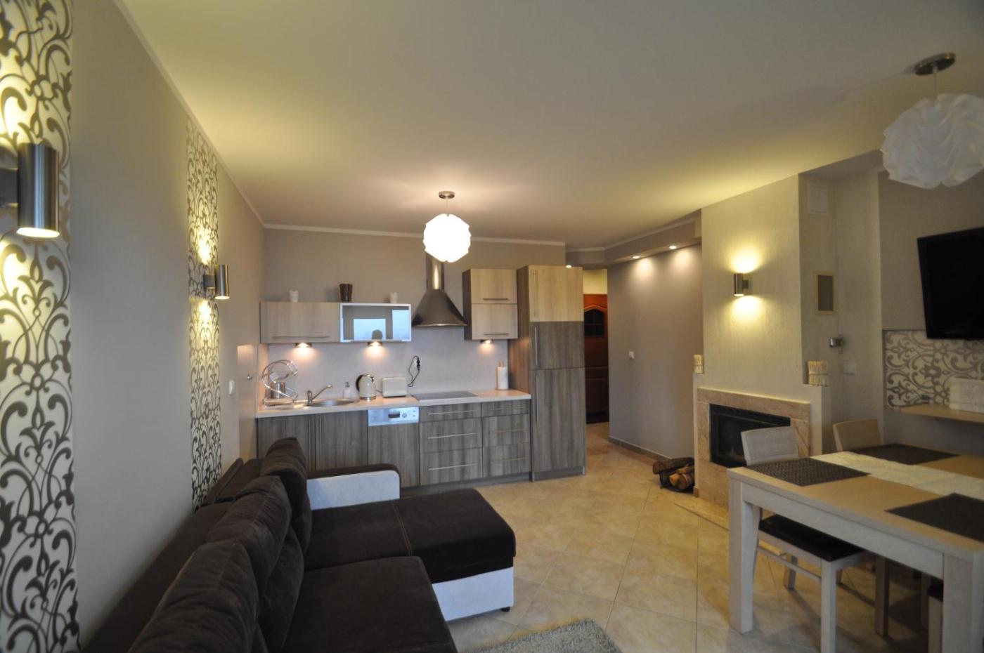 Apartament typu studio. The sauna and fireplace are the special features of this apartment. This apartment comes with 1 living room, 1 separate bedroom and 1 bathroom with a walk-in shower and a hairdryer. Guests will find a stovetop, a refrigerator, a dishwasher and kitchenware in the well-equipped kitchenette. The apartment also includes a barbecue. Boasting a terrace with garden views, this apartment also features a washing machine and a flat-screen TV with cable channels. The unit has 2 beds. Apartament - 4 osobowy. Powierzchnia pokoju ok.: 35 mkw.