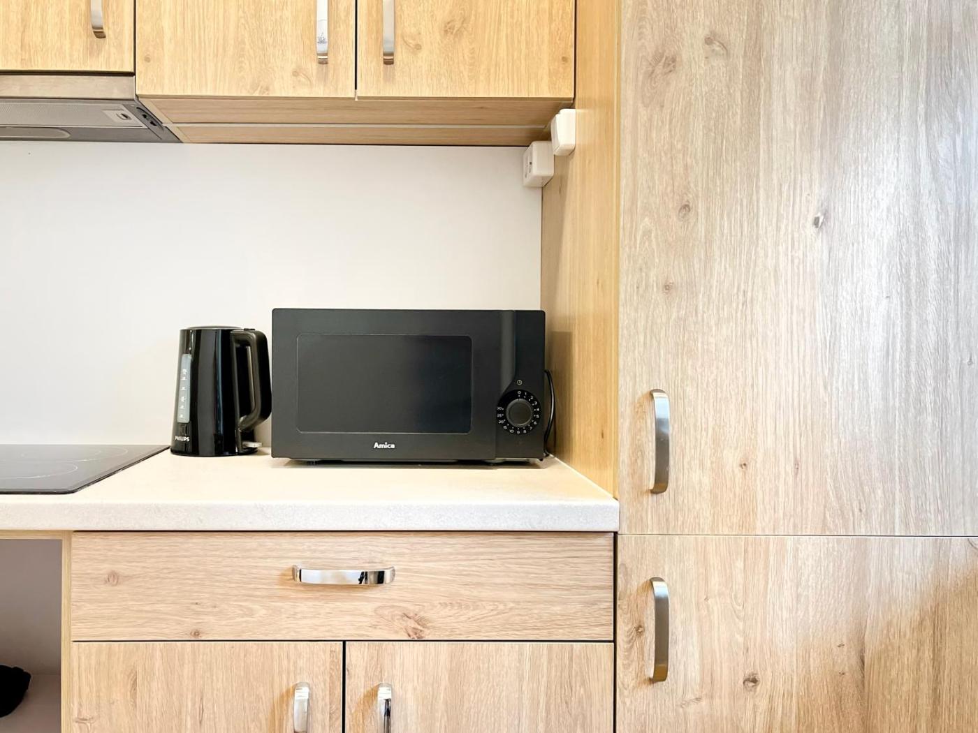 Apartament. This apartment comprises 1 bedroom, a kitchen and 1 bathroom with a shower and a hairdryer. Meals can be prepared in the kitchen, which comes with a stovetop, a refrigerator, kitchenware and a microwave. The apartment provides a tea and coffee maker, a dining area, a wardrobe, heating and a flat-screen TV with streaming services. The unit offers 1 bed. Apartament - 2 osobowy. Powierzchnia pokoju ok.: 30 mkw.