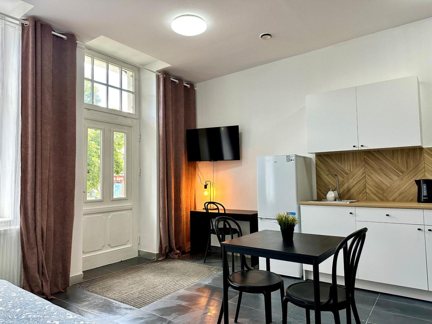 Studio. The studio features a washing machine and a dining area, as well as a private bathroom boasting a shower. In the fully equipped kitchenette, guests will find a stovetop, a refrigerator, kitchenware and an electric kettle. The studio offers a wardrobe, parquet floors, heating and a flat-screen TV. The unit has 1 bed. Studio - 2 osobowy. Powierzchnia pokoju ok.: 20 mkw.