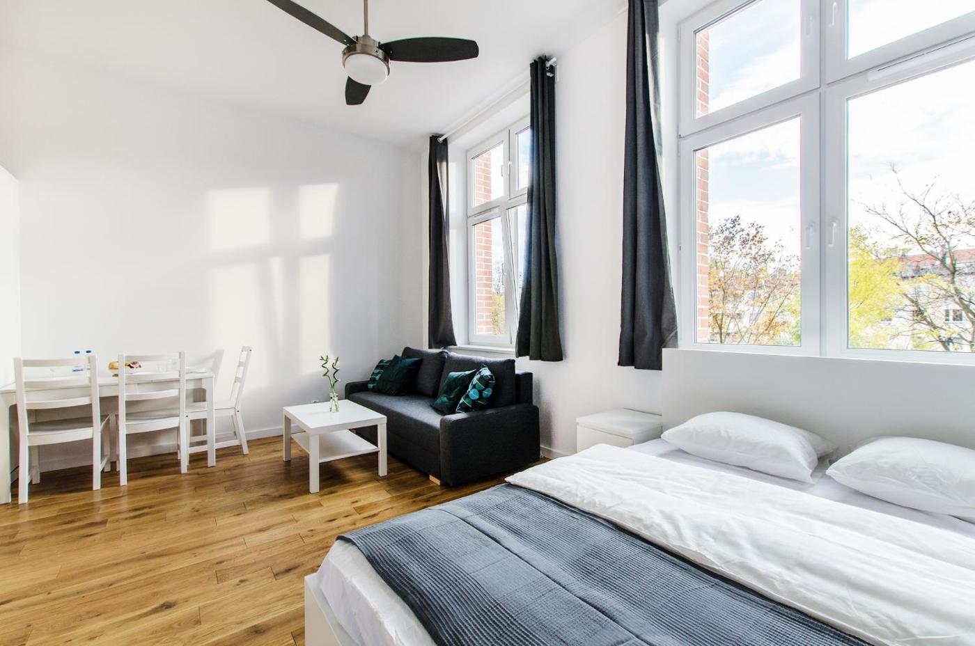 Apartament z 1 sypialnią. Featuring a private entrance, this apartment also consists of 1 bedroom, a seating area and 1 bathroom with a shower and a hairdryer. Meals can be prepared in the kitchen, which is equipped with a stovetop, a refrigerator, a dishwasher and kitchenware. The apartment provides a washing machine, a wardrobe, an electric kettle, a flat-screen TV, as well as ancourtyard view. The unit offers 2 beds. Apartament - 4 osobowy. Powierzchnia pokoju ok.: 38 mkw.