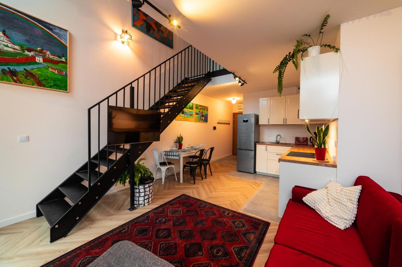 Apartament z 2 sypialniami. This spacious apartment includes 1 living room, 2 separate bedrooms and 1 bathroom with a bath and a shower. In the well-fitted kitchen, guests will find a stovetop, a refrigerator, kitchenware and an oven. This apartment has soundproof walls, a tea and coffee maker, a flat-screen TV with streaming services and a patio. The unit has 3 beds. Apartament - 6 osobowy. Powierzchnia pokoju ok.: 64 mkw.